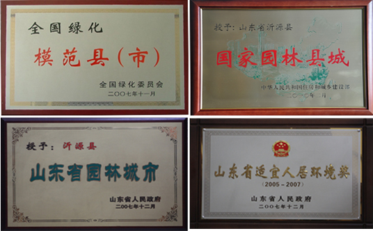 “全国绿化模范县”、“国家园林县城“、“省级园林城市”,获“山东省适宜人居环境奖”。沂源境内山峦起伏,河流纵横,四季气候温润,风清气爽,光照充足,是山东省光照时间最长、内陆夏季平均气温最低的区域,境内无客水流入,无“三废”污染。全县森林覆盖率51.3%,城区绿化覆盖率45.3%,人均公共绿地面积19.9平方米;以鲁山国家森林公园为代表的高山林海,是名符其实的“天然氧吧”。