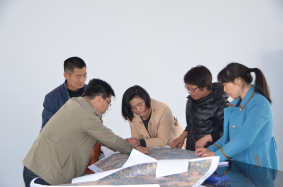 图为bt365体育投注工作人员到悦庄镇指导镇村业务骨干“落地块”。