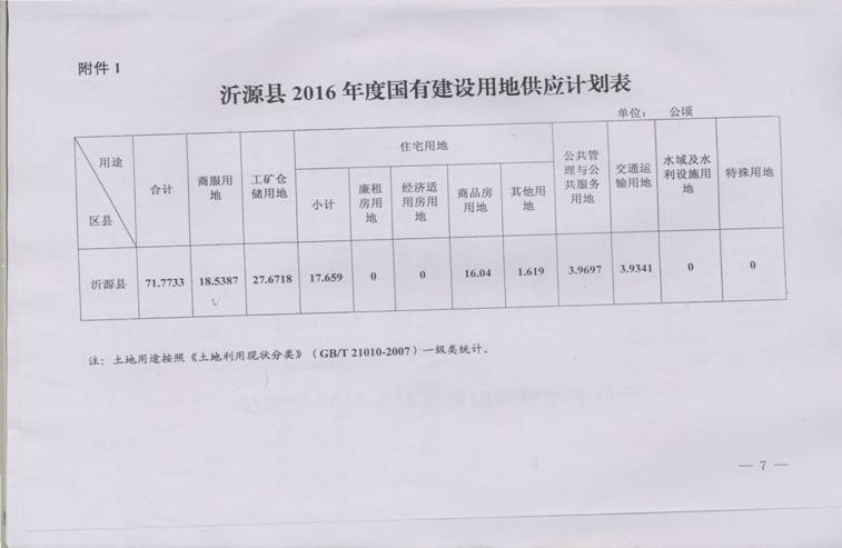 沂源县2016年国有建设用地供应计划